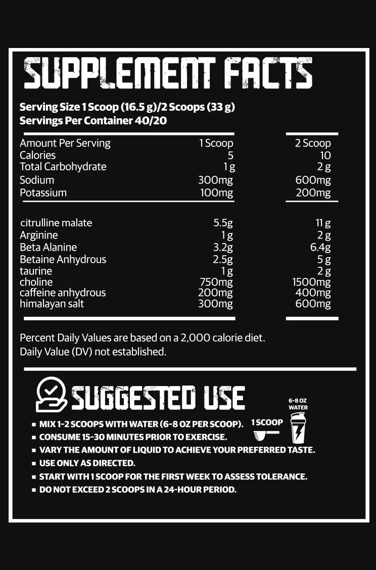 Summoned from the shadows to strike fear into fatigue itself, this formula delivers relentless energy, laser focus, and monstrous pumps that won’t quit.